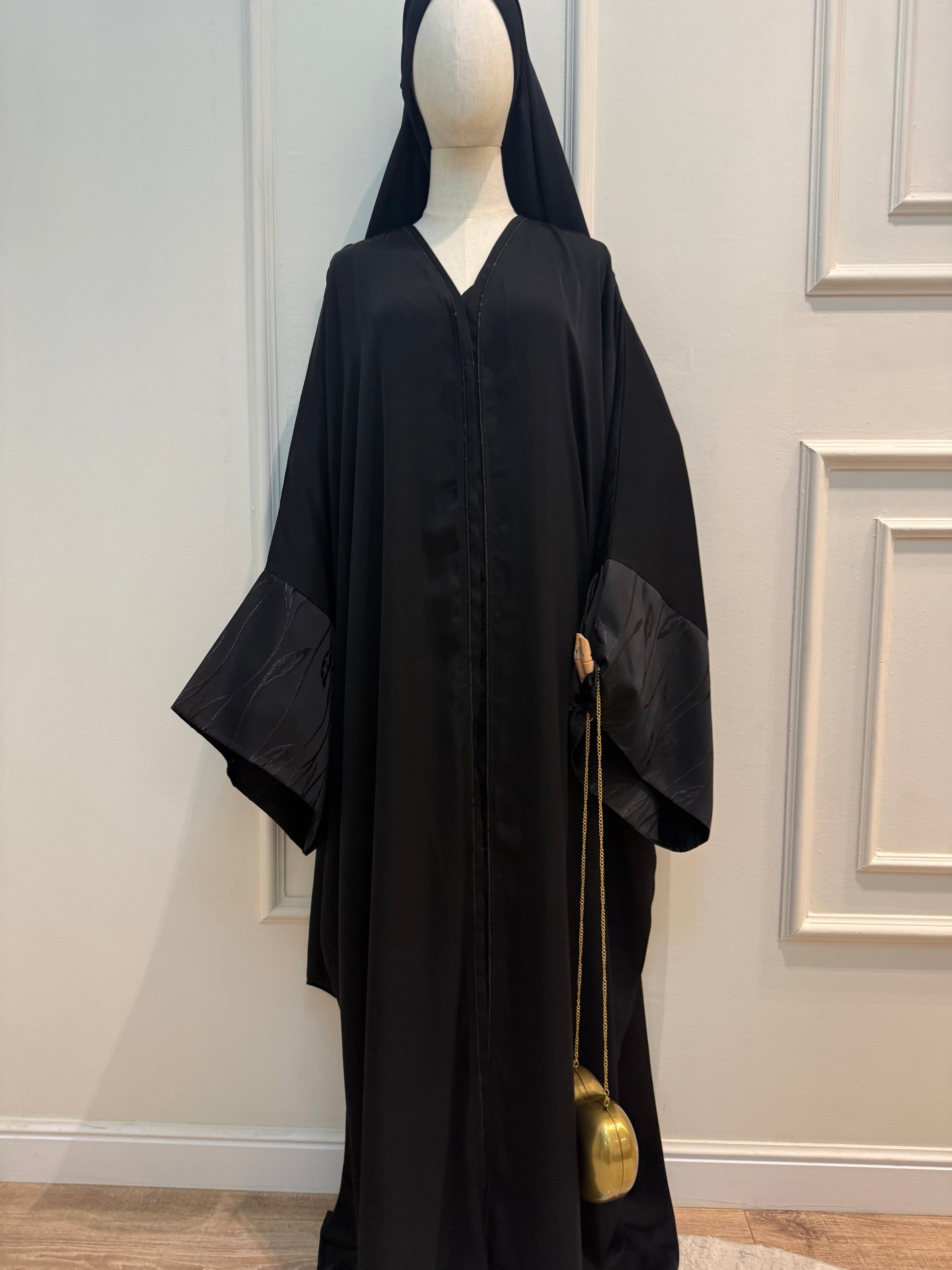 La abaya Mila c’est la abaya noire qu’il vous faut dans votre garde robe. Une tenue classique intemporel et indémodable. Elle peut se porter ouverte façon kimono ou bien fermée. Sa coupe oversize, ses manches évasées et son tissu en crêpe premium lui confère une élégance en toutes circonstances.