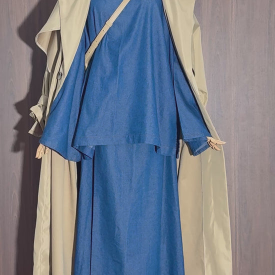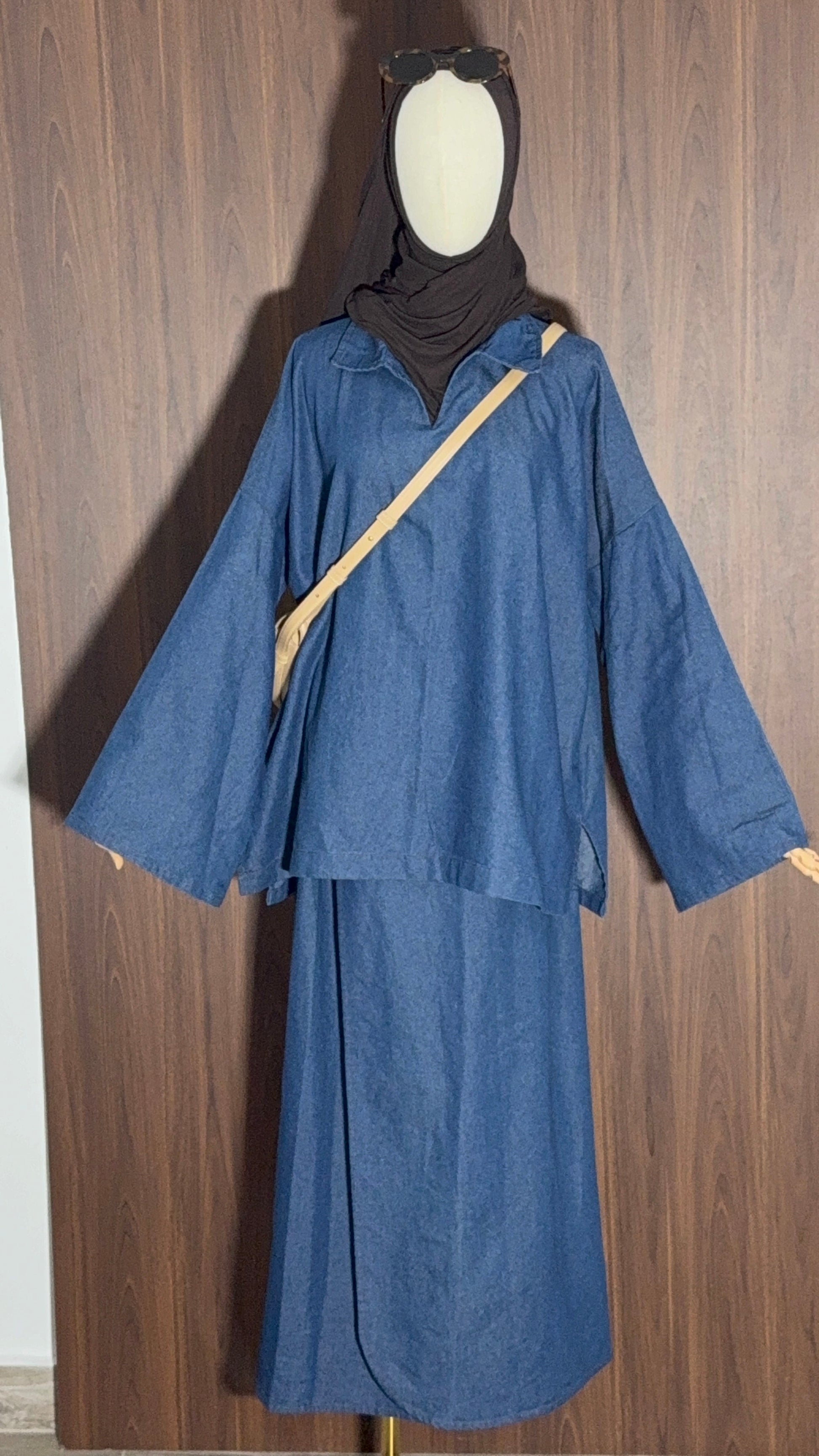 Le set June est inspiré de la tendance Japandi japonaise. Il est composé de deux pièces: une jupe style portefeuille et une chemise à col oversize . Le tout est confectionné dans un denim jean ni trop épais ni trop fin idéal pour toutes les saisons.